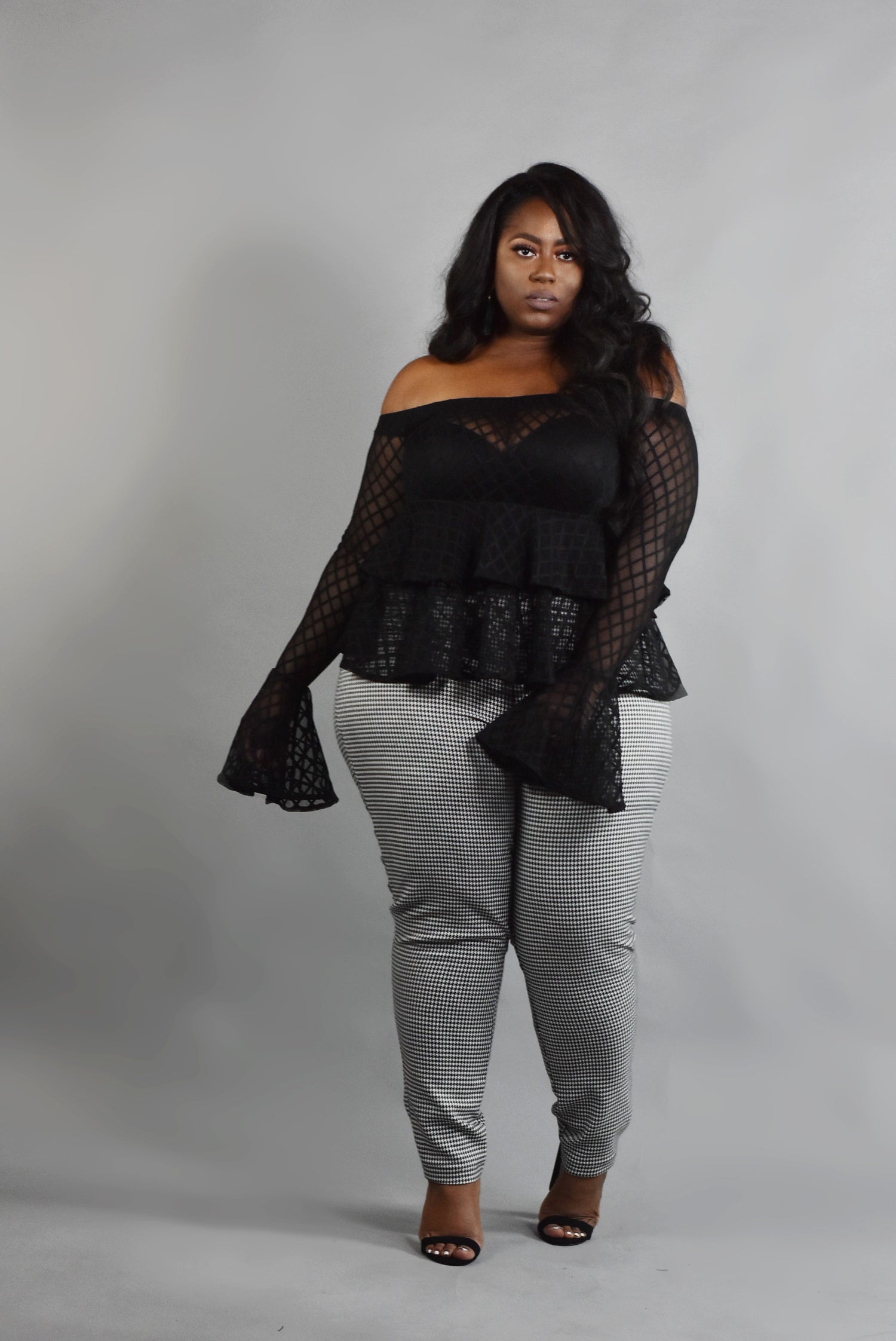 Models are wearing a size 20